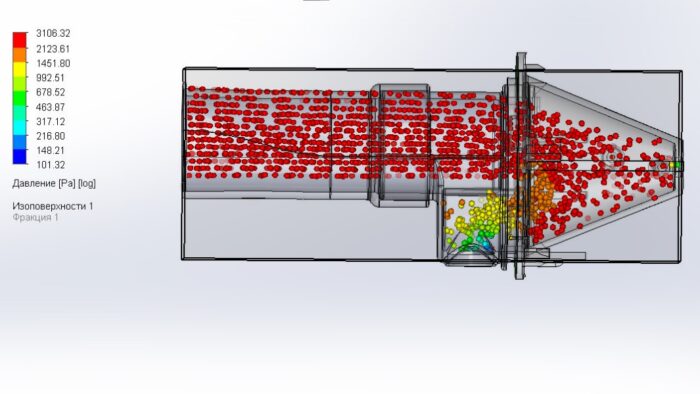На рисунке один из этапов моделирования потока воздуха через воронку.