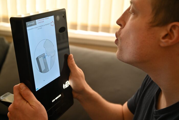 Специальный переходник направляет основную часть воздуха на анализ, а избыток отводит через боковой канал. Это предотвращает накопление патогенов на воронке и расширяет функционал прибора для сбора дополнительных параметров выдоха человека.